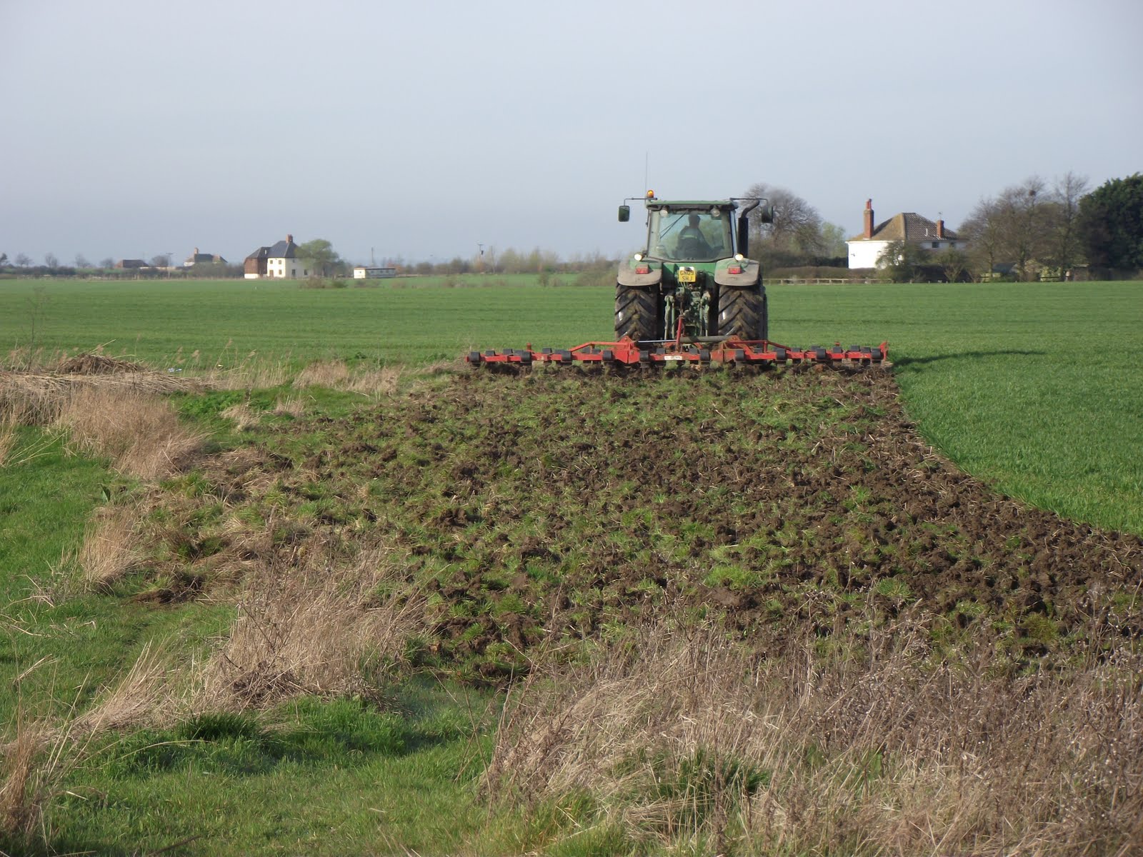 On the farmland alongside the reserve this tractor was turning over the remains of last years cover strips. These cover strips are to be found round the perimeters of most of the arable fields on Harty. They are re-sown every Spring with a mixture of maize, barley, millet and other seeds and as well as providing cover and food for the game birds they are of enormous benefit to finches and buntings throughout the winter. Reed Buntings in particular get great help from these strips and are often found in good numbers in them. Elmley NNR have created two such strips there to sow this Spring for the benefit of their small number of Grey Partridges and the passing finches and buntings.