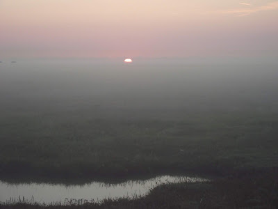 So, after yesterday morning's early start, I was back on the reserve this morning at 05.15 to see how many wildfowlers were seeing in the start of the season, only trouble is, as you can see below, seeing wasn't exactly an option. It was only 7 degrees, there were clear, light blue skies beginning to show above the marsh, but also a mist that obscured forward vision up to height of about 20 feet. I heard a couple of shots be fired the other side of the sea wall so knew that somebody was there but couldn't see who fired them.